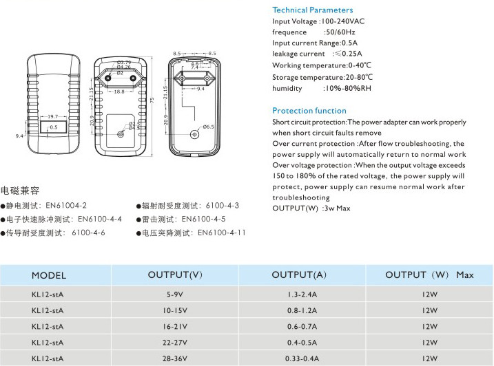 12W插墻式電源適配器